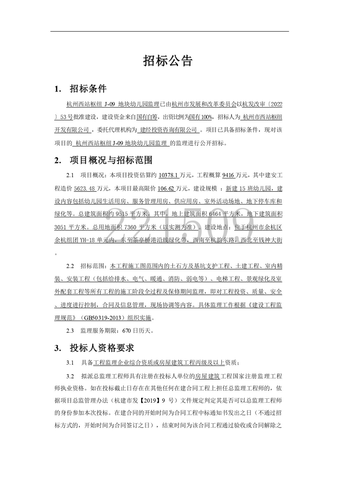 杭州西站樞紐 J-09 地塊幼兒園監(jiān)理招標(biāo)公告