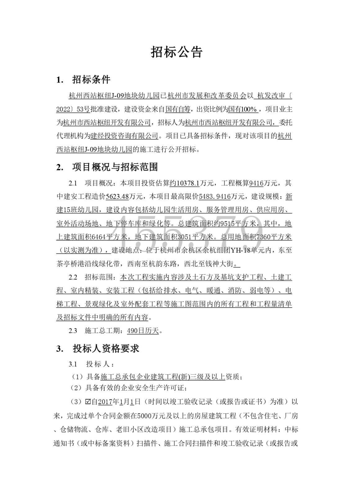 杭州西站樞紐J-09地塊幼兒園招標(biāo)公告