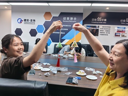 一年一端午,一歲一安康。在端午佳節(jié)來臨之際,為繼承和弘揚(yáng)中華民族優(yōu)秀傳統(tǒng)文化,營造濃厚的節(jié)日氛圍,增強(qiáng)員工歸屬感和團(tuán)隊(duì)凝聚力,6月21日下午,建經(jīng)投資咨詢有限公司組織開展““粽”情建經(jīng),“粽”橫天下”慶?;顒?dòng)。員工自己動(dòng)手DIY制佩香囊,品嘗美味的粽子和小點(diǎn)心,在歡聲笑語中喜迎端午佳節(jié)。