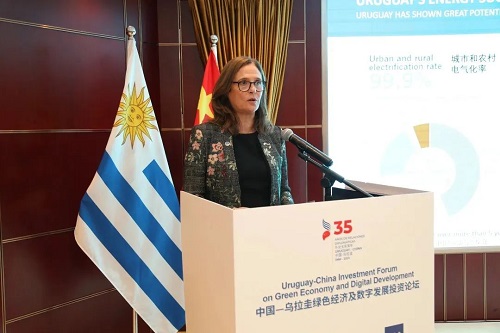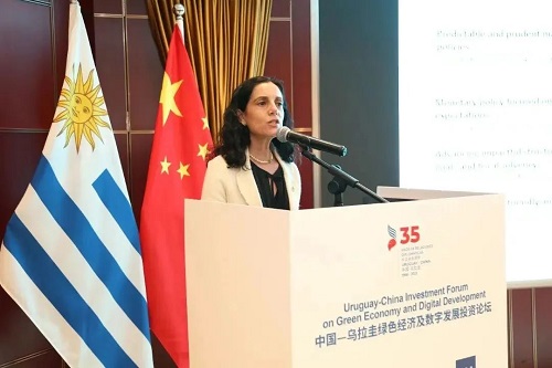 會(huì)上,烏拉圭經(jīng)濟(jì)和財(cái)政部部長(zhǎng)阿韋萊切作了題為《可持續(xù)投資及財(cái)政》的演講。介紹了烏拉圭經(jīng)濟(jì)、政治等方面的穩(wěn)定性和良好的外資投資環(huán)境,表達(dá)了對(duì)中國(guó)企業(yè)投資烏拉圭的歡迎和中烏兩國(guó)擴(kuò)大合作的期待。烏拉圭工業(yè)、能源和礦業(yè)部部長(zhǎng)法西奧作了題為《綠色經(jīng)濟(jì)——烏拉圭創(chuàng)新中心》的演講,介紹了工業(yè)、能源和礦業(yè)部正在推動(dòng)的礦業(yè)計(jì)劃、生物技術(shù)、深度科技以及綠色技術(shù)方面的深耕戰(zhàn)略以及在綠氫、風(fēng)能、電子燃料、綠色肥料等方面的項(xiàng)目,并表達(dá)了在可持續(xù)發(fā)展領(lǐng)域合作的期待。當(dāng)前烏拉圭正進(jìn)入能源轉(zhuǎn)型的第二階段,下一步的重點(diǎn)是交通和工業(yè)領(lǐng)域的降碳,希望進(jìn)一步加大與中國(guó)在電動(dòng)汽車、綠色氫能等方面的合作。