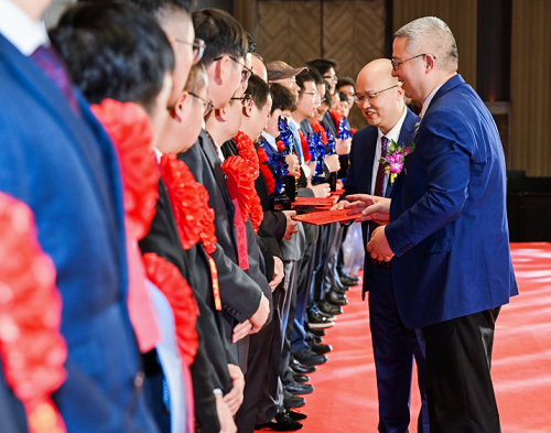 黃志挺董事長(zhǎng)、項(xiàng)兵總經(jīng)理、伍亨宇常務(wù)副總經(jīng)理、鄭正傳副總經(jīng)理上臺(tái),用金豆點(diǎn)亮建經(jīng)璀璨的20年。金豆寓意著豐收與傳承、也傳遞著吉祥和喜悅,祝愿未來(lái)的建經(jīng)飛黃騰達(dá)、生生不息!