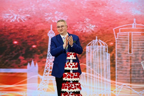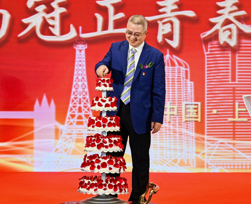黃志挺董事長(zhǎng)和大家分享20周年慶典生日蛋糕