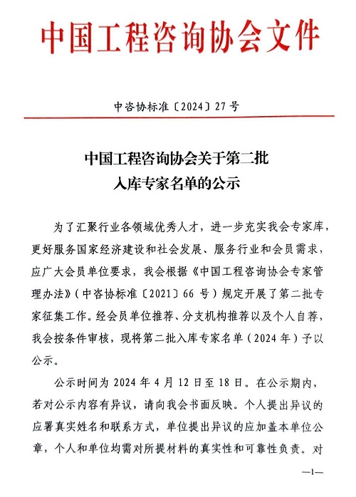 本次建經(jīng)咨詢?nèi)脒x的九位專家長期從事工程咨詢工作,熟悉工程咨詢行業(yè)及專業(yè)領(lǐng)域業(yè)務(wù),具有較高學術(shù)造詣和專業(yè)技術(shù)水平,尤其在全過程工程咨詢方面具有豐富的實踐經(jīng)驗,專業(yè)能力得到行業(yè)的充分認可。