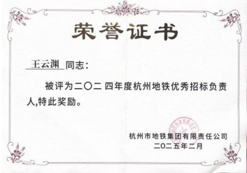 2024年度杭州地鐵優(yōu)秀招標(biāo)代理單位
