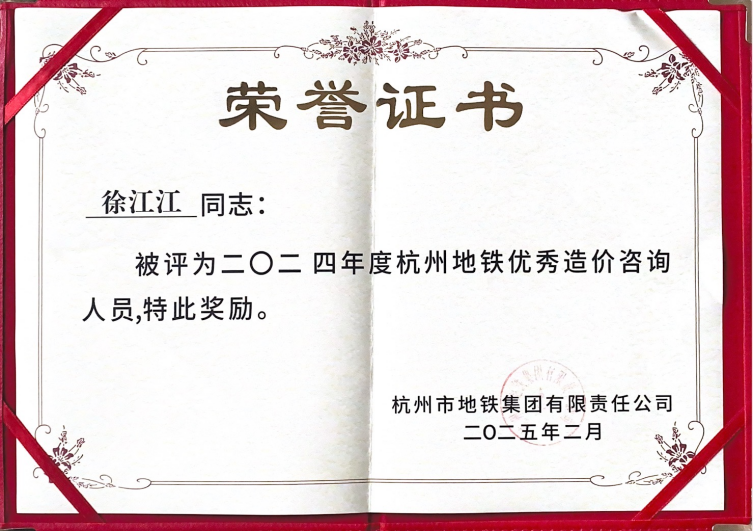 2024年度杭州地鐵優(yōu)秀造價(jià)咨詢總監(jiān)